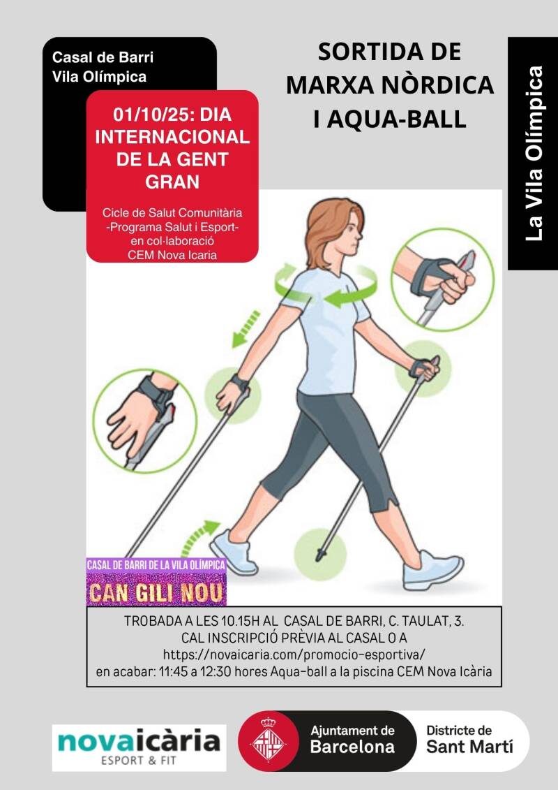 10:30 a 11:30 hores Marxa Nòrdica amb Montse Jansana- Punt d’inici 10:15 al Casal de barri i punt final CEM Nova Icària – 15 PLACES DISPONIBLES