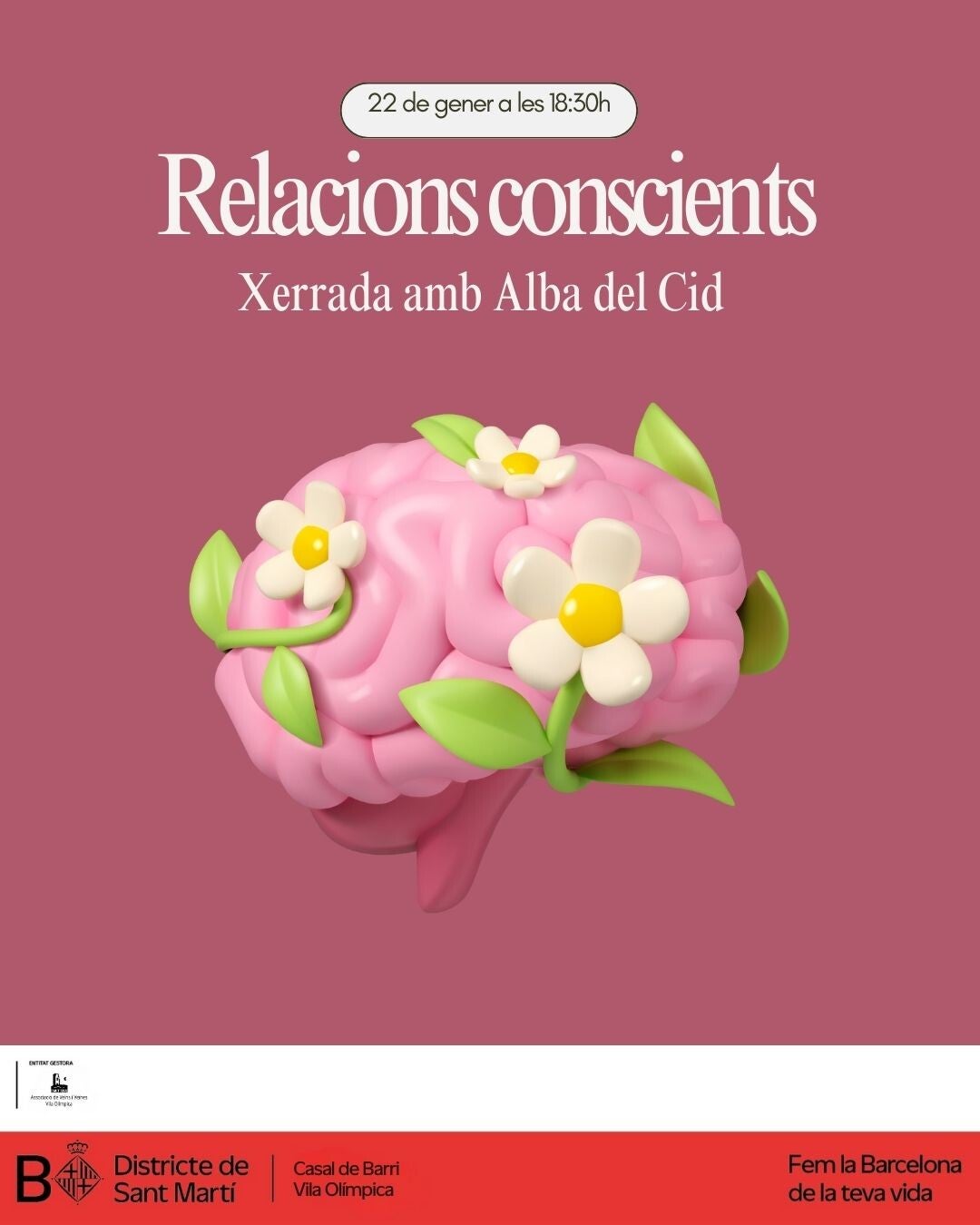 Places limitades. Cal inscripció prèvia a cb@aavv-vilaolimpica.com o truca al 932219522.